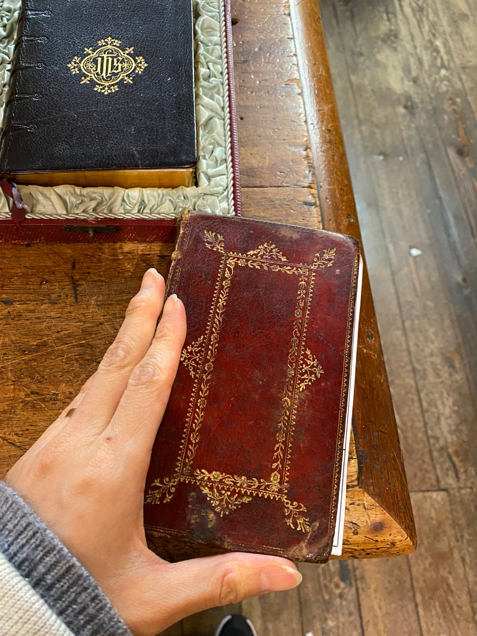 무심코 올려져 있는 검붉은 양장본을 발견했다.