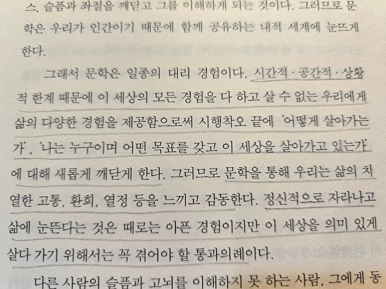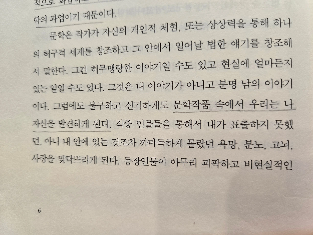 문학작품을 읽는다는 것은 너와 내가 같고, 다른 사람도 나와 똑같이 인간이기 때문에 느낄 수 있는 고뇌와 상처를 이해하는 능력을 기르는 일이다. 그리고 삶을 살아가는 데 있어서, 또는 인간다운 삶을 영위하기 위해 이러한 인간이해는 필수조건이다. (작가의 말 중에서)