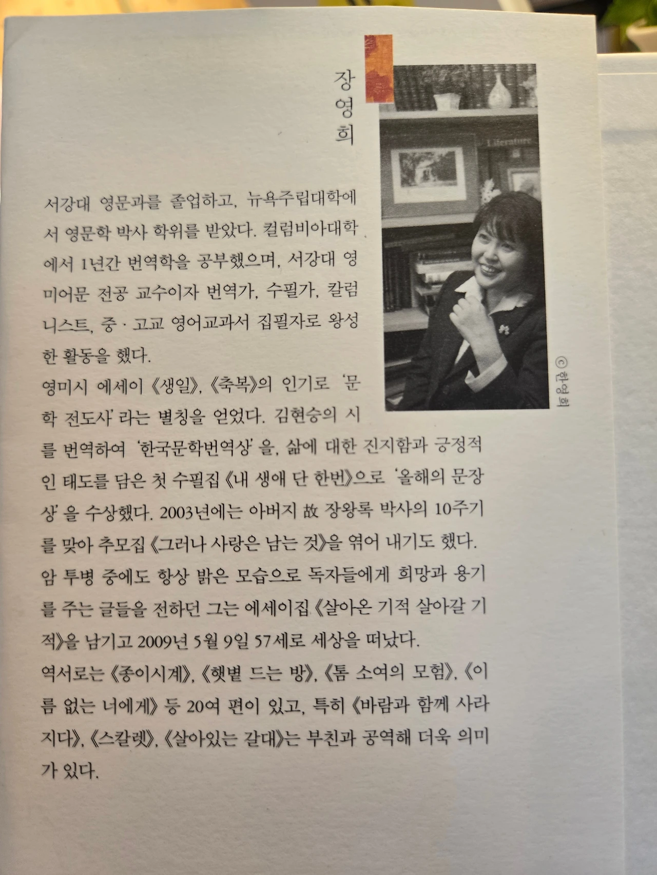 「문학의 숲을 거닐다, 장영희」