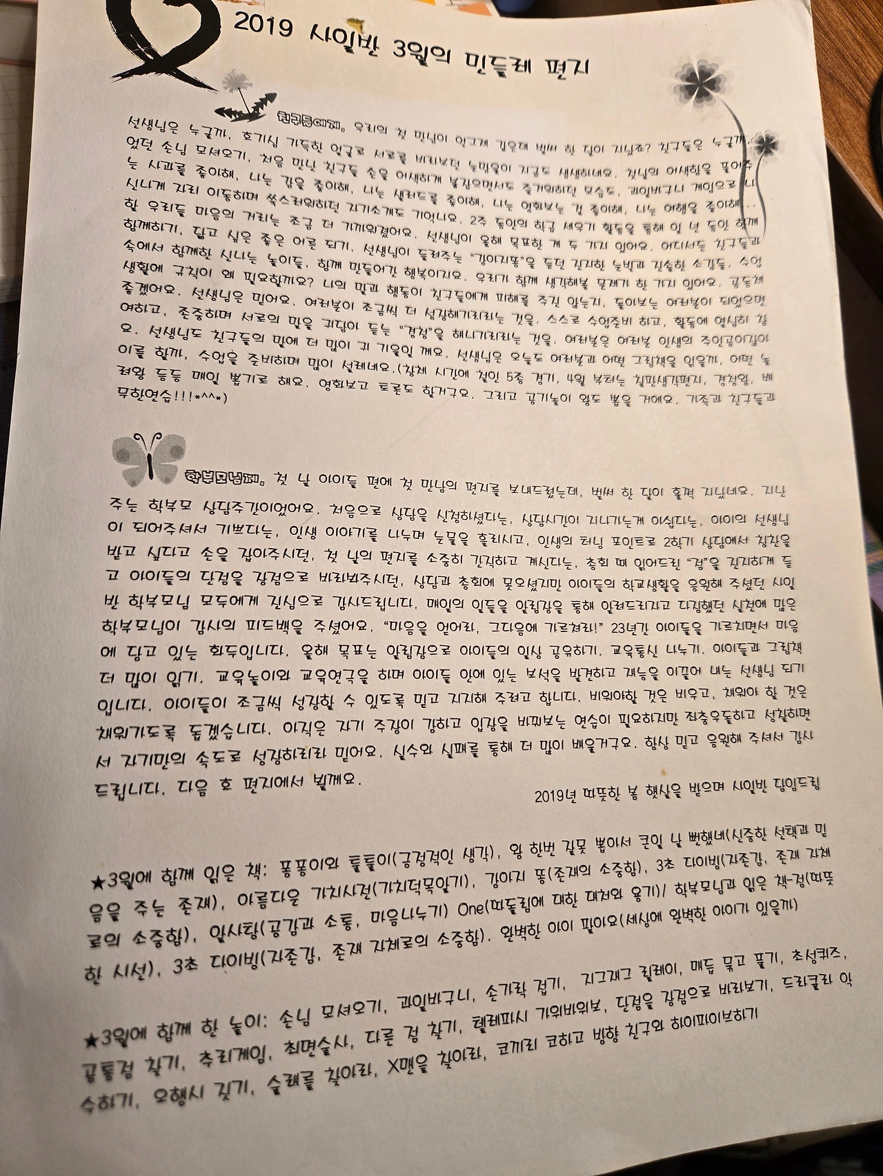 2019 사 일반 3월의 민들레 편지