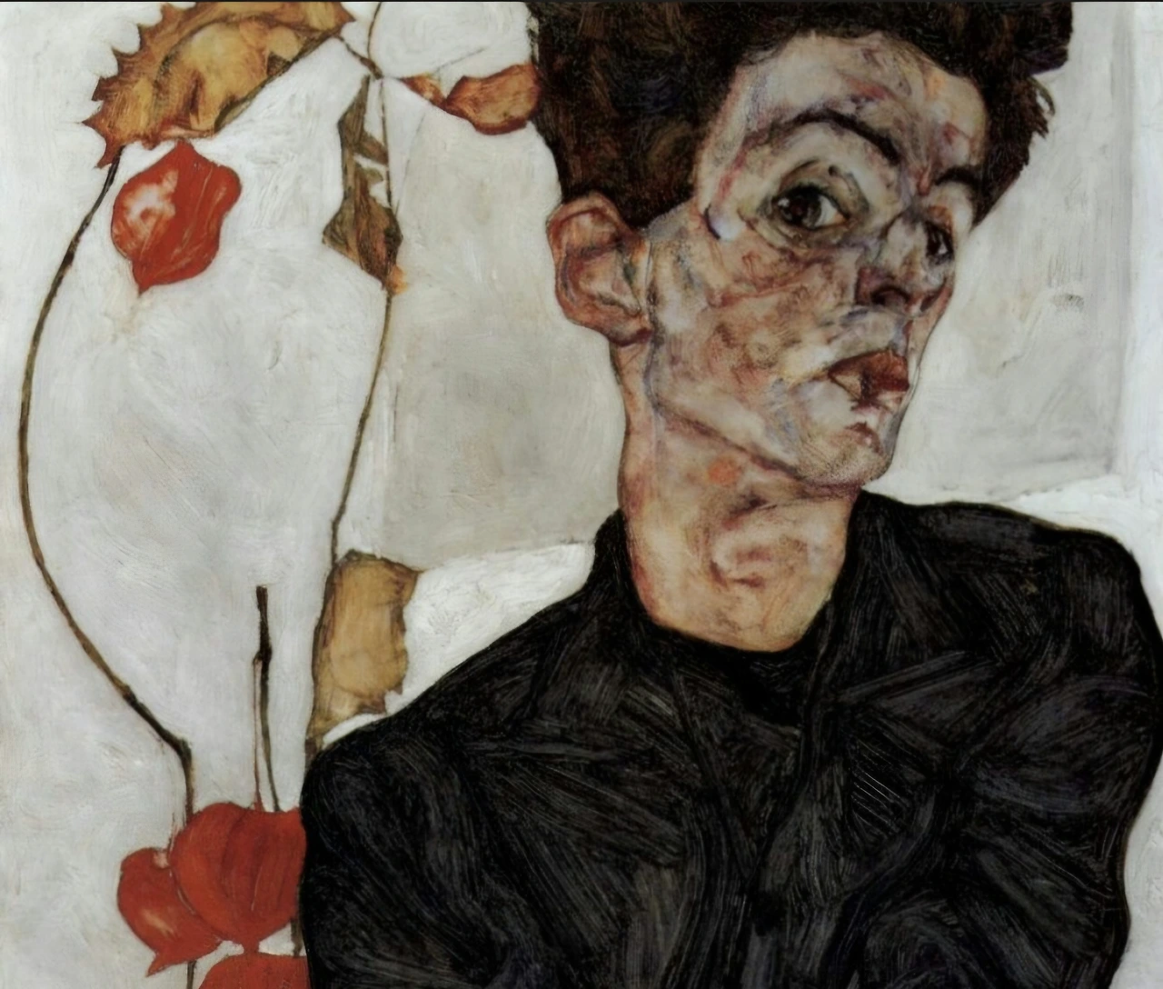 에곤 실레, 꽈리열매가 있는 자화상, 레오폴드 미술관 소장, 출처 wikimedia commons