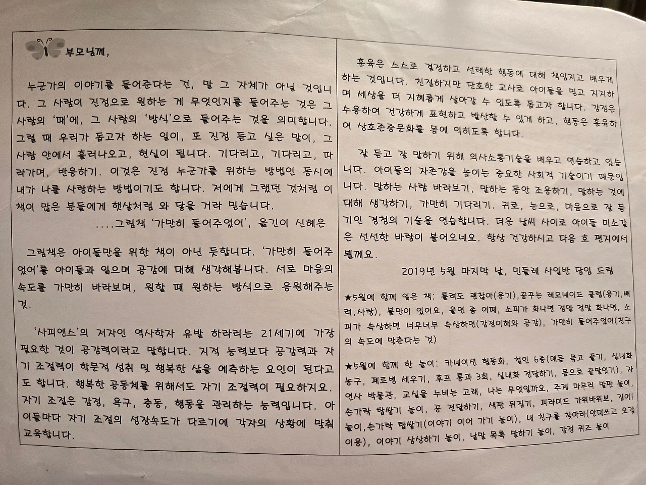 2019년 5월 민들레편지