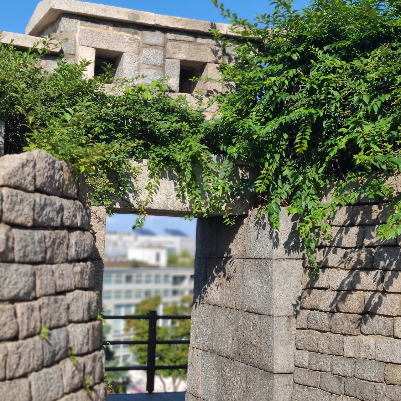 성곽 아래로 내려다보이는 서울의 일상 풍경이 낯설어 보이고, 시간의 흐름이 겹겹이 쌓인 듯한 기분이 든다.