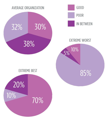 으로 대다수(79%)가 3년 이하임. 1~2년의 pilote 싸이클을 돌려봤을 뿐. 즉 전체적으로, 성과관리 혁명의 초기 단계라 할 수 있음