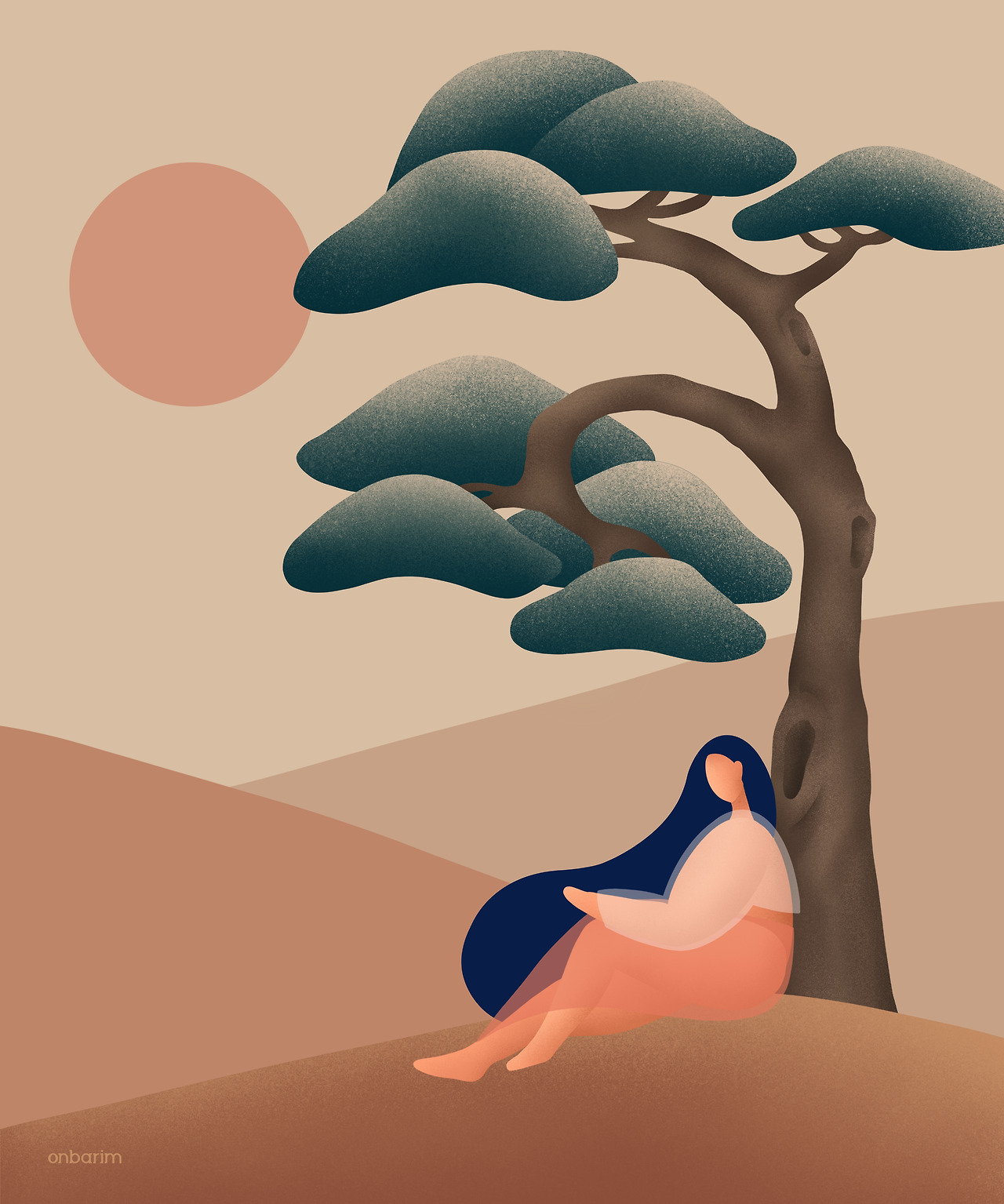 송하인도(2020)소나무에 등을 기대고 앉아 있는 여인의 모습을 담았다.