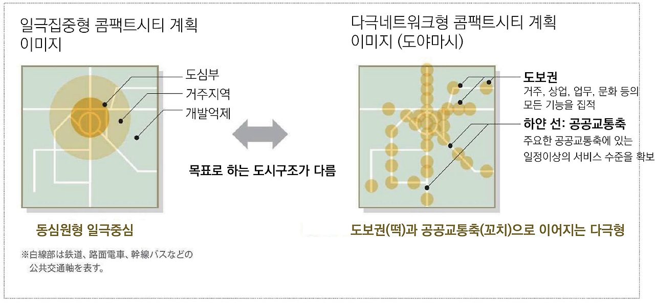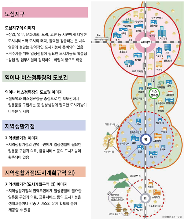1. 의료·복지·육아 지원·상업 등의 도시기능을 도시의 중심거점과 생활거점으로 집약시켜 생활서비스가 효율적으로 제공되는 도시공간,