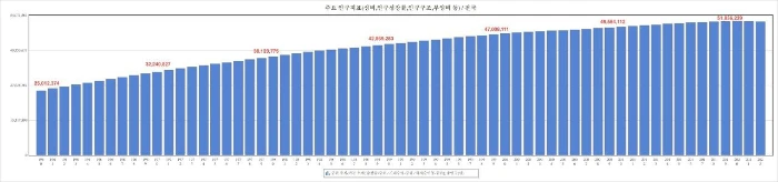 1925년경에는 1,900만 명 정도였던 우리나라는 근 100여 년 지난 지금 2.5배가 증가한 51,836,239명에 도달하였습니다. 그 사이 한국전쟁 등에 의한 인명피해가 극심했음에도 인구는 유래 없이 증가해왔죠. 그 상승곡선이 멈춘 것은 작년 바로 2021년입니다.