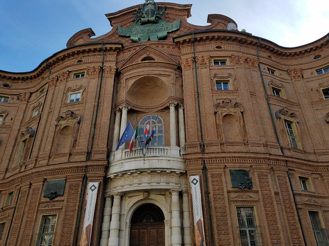 토리노에는 사보이 대공들의 후원을 받은 과리노 과리니와 그뒤를 이어 활약한 필립포 주바라 Filippo Juvarra (1678-1736)와 같은 걸출한 건축가들의 아름다운 바로크 건축물들이 많이 남아있다. 카리냐노궁 Palazzo Carignano 도 그중 하나이다. 과리니는 출렁이는 파도같은 유려한 곡선으로 이 건물의 정면에 드라마틱한 효과를 만들어냈다. 표면을 덮고있는 벽돌의 질감과 섬세한 디테일은 건물에 아름다움을 더한다.