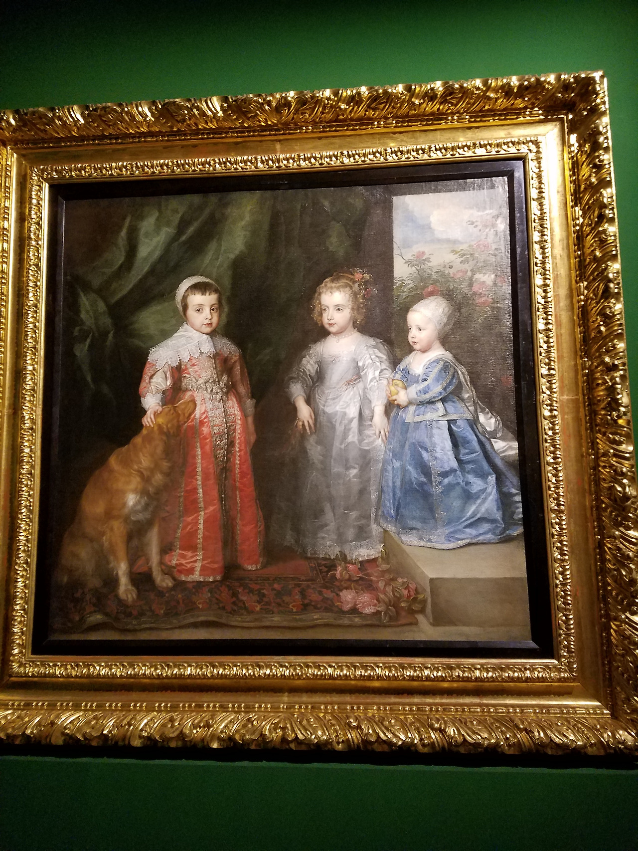 Charles I세의 자녀들인 Charles, Mary와 James영국 왕실의 궁정화가로 있는 동안 반다이크는 챨스1세 및 왕비의 초상 수십점을 그렸으며 자녀들의 초상도 다수 남겼다. 이번 전시에서도 왕실가족 초상을 여러 점 볼 수 있었다. 위의 그림에서 천진난만해 보이지만 기품이 있는 모습으로 그려진 3명의 어린아이들은 청교도혁명으로 죽임을 당하는 아버지 찰스 1세에 이어 왕위를 잇는 찰스 Charles II, 명예혁명으로 왕위를 잃은 제임스 James II, 그리고 제임스에 이어 왕위에 오르는 윌리엄 William III 의 어머니인 메리 Princess Royal Mary 다. 이 초상이 그려질 당시 그누구도 이 어린아이들이 영국 정치사에서 가장 격동적인 시기의 주인공들이 되리라고는 짐작조차 못했으리라.