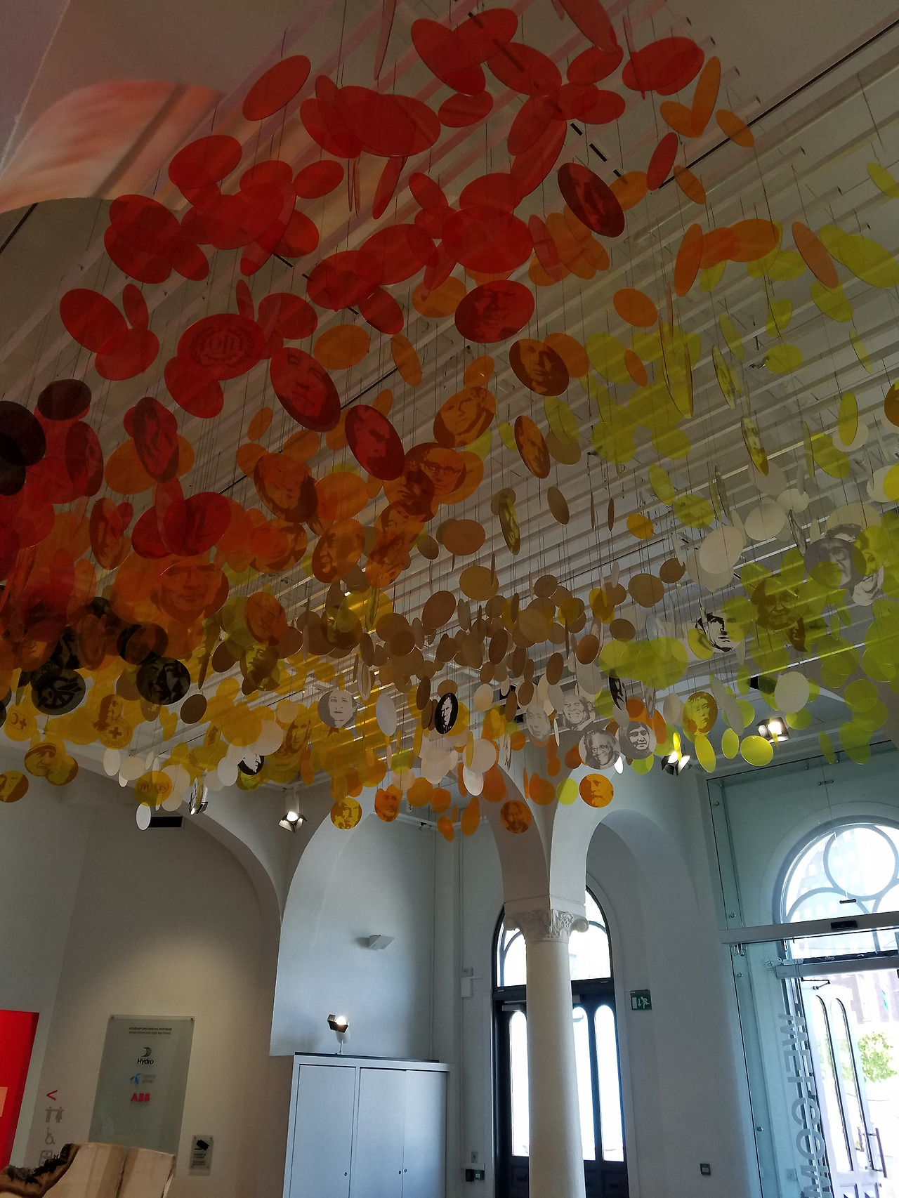 노벨피스센터. 로비 천정은 역대 노벨평화상 수상자들의 얼굴이 찍힌 조형물로 장식되어있다.