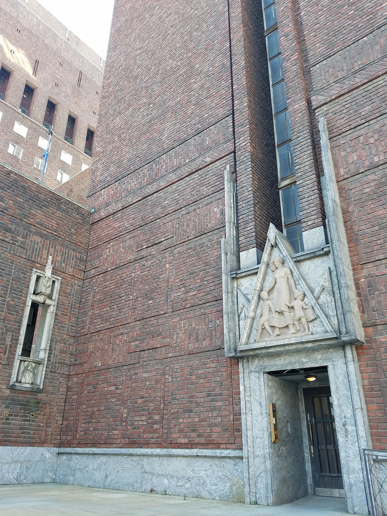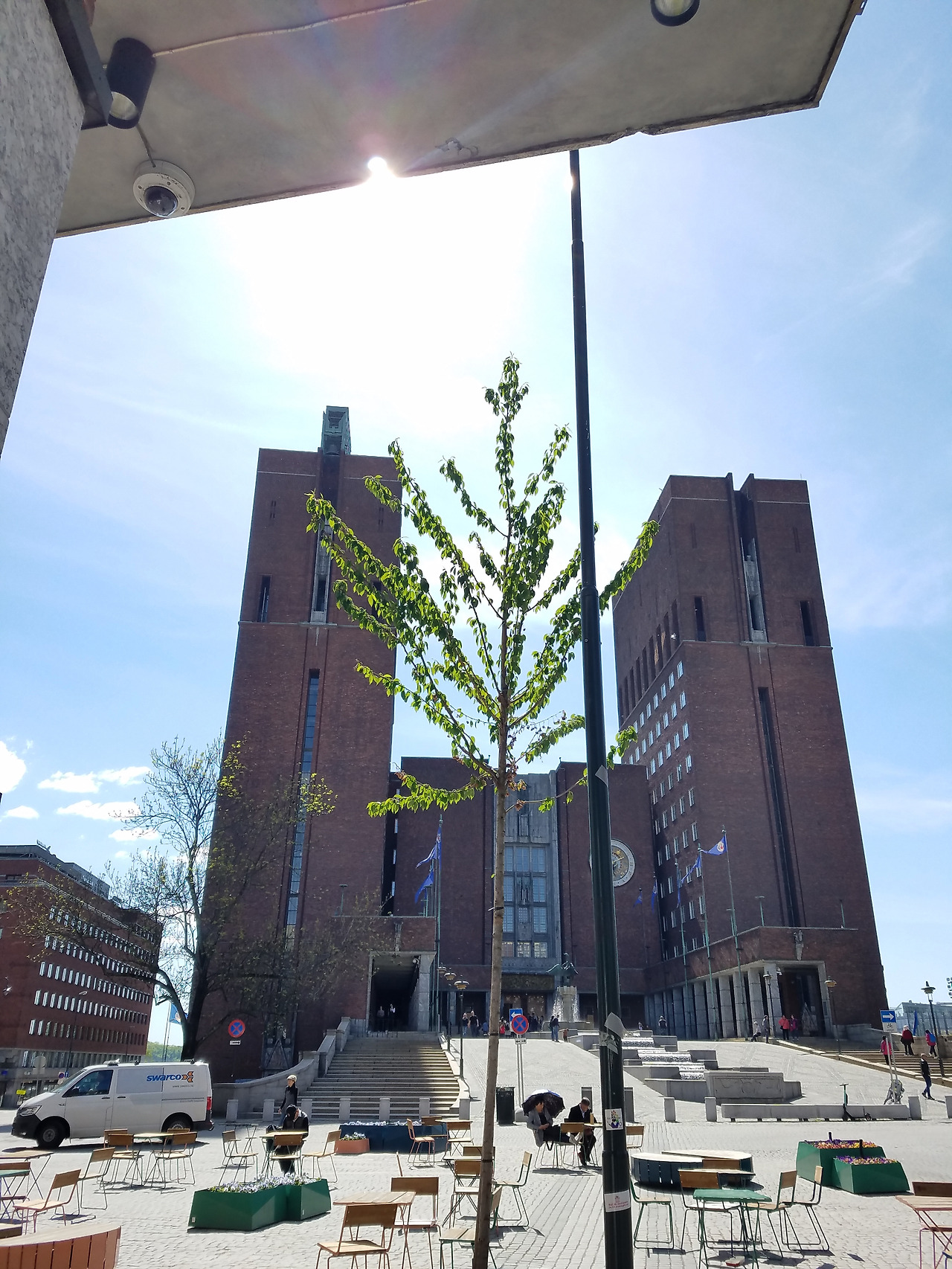 노벨 피스 센터 부근의 오슬로 시청은 오슬로 피오르에 면해있다. 1931년 착공되어 부분적으로는 1950년 공식오픈 이전부터 사용되고 있던 이 건물은 커다란 두개의 타워가 인상적이다. 건물 외관은 모두 붉은 벽돌들로 마감되어 있는데 얼핏 엄격 단순해 보이지만 가로 세로로 기하학적인 변화 요소가 가미되어 마치 벽돌로 직조한 태피스트리인 듯고풍스럽고 정적인 아름다움이 있다. 노르웨이의 역사와 문화가 반영되었다는 부조기법의 조각들 또한 건물과 조화를 이룬다. 이곳에서는 매년 알프레드 노벨의 임종일인 12월 10일 노벨평화상 시상식이 열린단다.