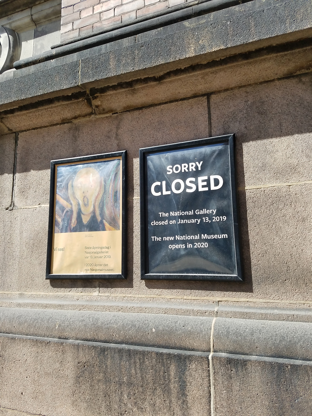 다른 버전의 '절규'가 소장되어 있는 내셔날 갤러리는 내년까지 임시 휴관이다. 아쉽기도하고 또 홀가분하기도한 기분. 노르딕 국가 중에서 가장 큰 미술관이 될 것이라는 새로운 내셔날 갤러리와의 만남은 다음 번 여행까지 미뤄둔다. 지금 2020년 개관 예정의 신축 미술관이 노벨 평화상 수상자들의 자료관인 노벨피스센터 뒷편 옛 철도 역사에서 한창 마무리 공사 중이다.