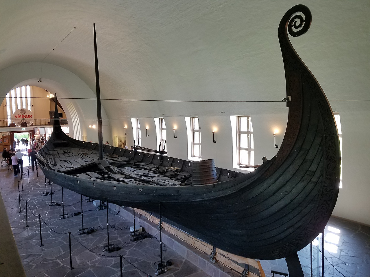 1903년 Oseberg에서 발굴된 Oseberg Viking Ship은 화려하고 정교한 장식이 두드러진다. 고고학자들의 연구에 따르면 길이 22m 폭 5m에 이르는 이 배는 AD 820 년 건조 되었는데 AD 834년 유골을 통해 50대와 80대로 추정되는 두 여성의 grave ship 이 되었다고 한다. 반면 Gokstad Viking Ship 에서는 4-50대의 남성 유골이 발견되었는데 생전의 키가 180에서 183cm이었을 것으로 추정된다. 9세기에 이미 조상들이 그리 컸으니 오늘날 유난히 노르웨이 사람들이 키가 큰게 이상한 일이 아닌듯 싶다. 코펜하겐에 갔을 때도 너무들 키가 커서 놀랐는데 노르웨이 사람들은 그보다 더 커보인다. 비행기 천정에 키가 거의 닿는 이들도 드문드문 있었다. 하나님이 그점에선 그다지 공평하시지만은 않은듯.