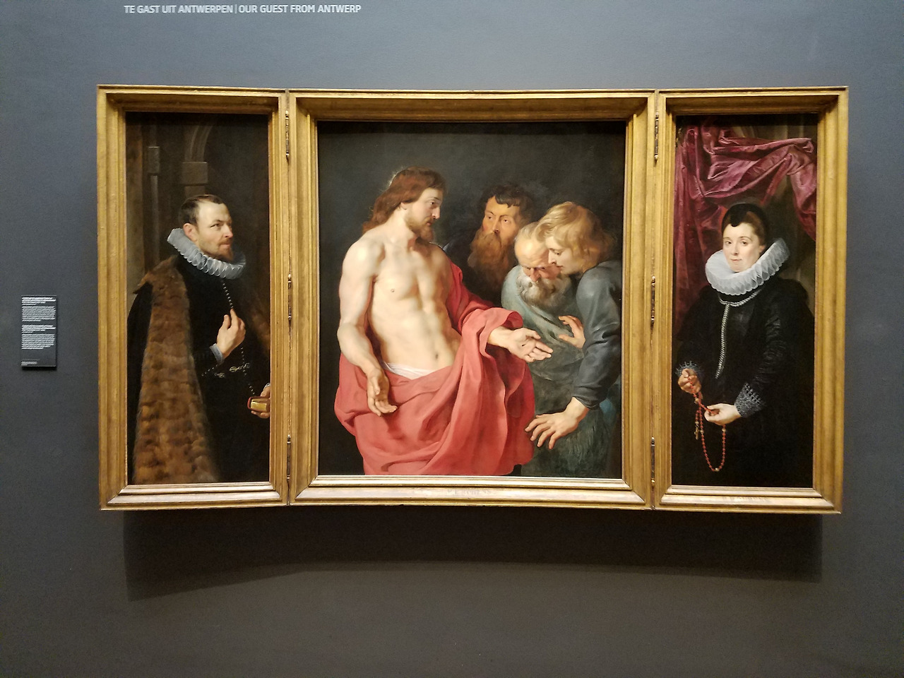 베르메르 Johannes Vermeer (1632-1675)의 여인들 앞에 잠시 머무르다 이어 루벤스 Peter Paul Rubens (1577-1640)의 작품을 만났다. 중앙부에 '의심하는 도마 Doubting Thomas' 가 있는 삼면 제단화의 왼편에 그려진 니콜라스 록콕스 Nocolaas Rockox (1560-1640)의 얼굴이 눈에 들어왔다. 니콜라스는 루벤스의 후견인이자 친구였고 앤트워프 시장을 여덟 번이나 맡았던 당대의 명망가다.