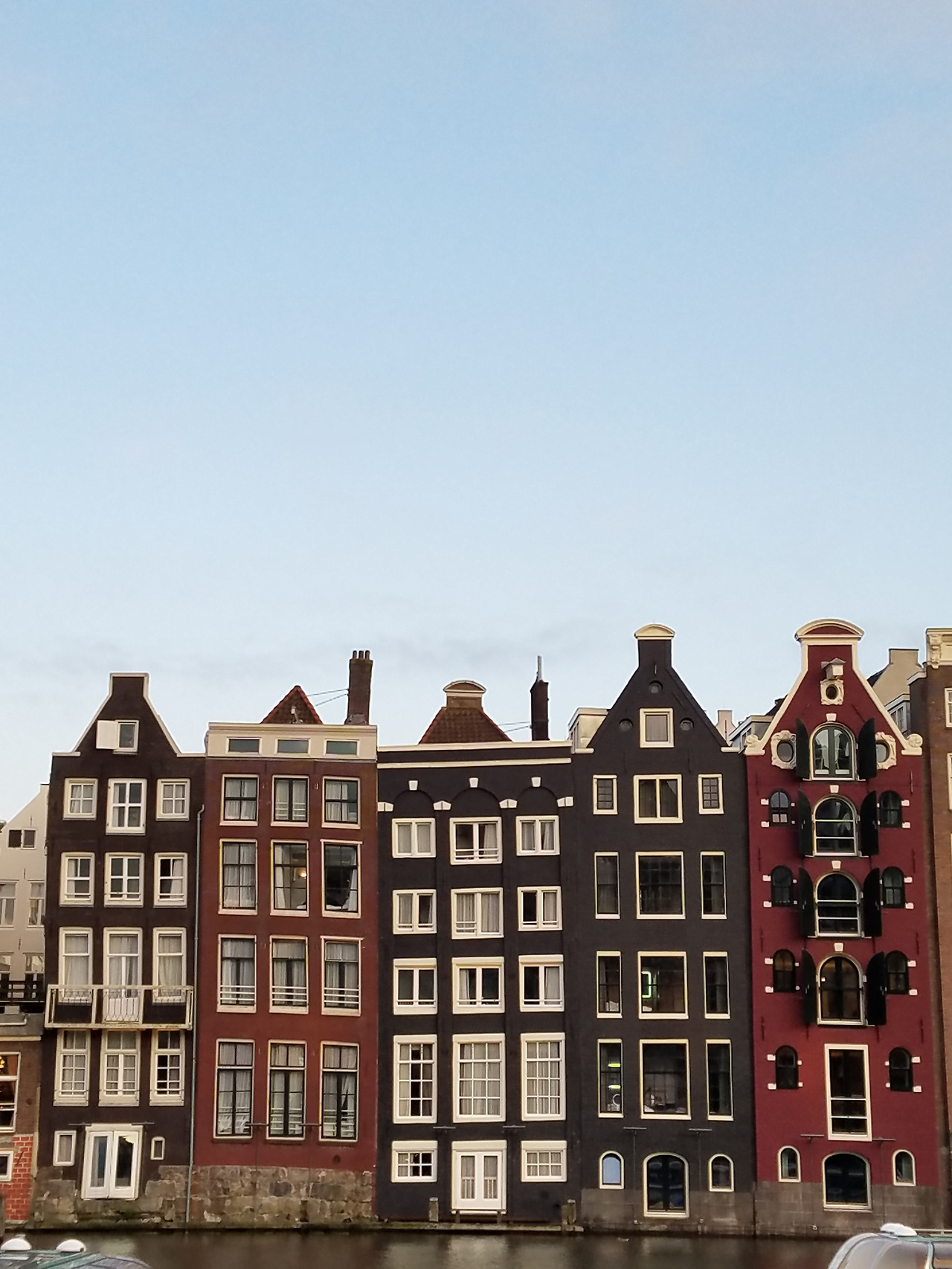 운하에 접한 암스테르담의 전형적인 타운하우스들. 기울어진 이웃에게 어깨를 내주며 서로 지탱해준다.