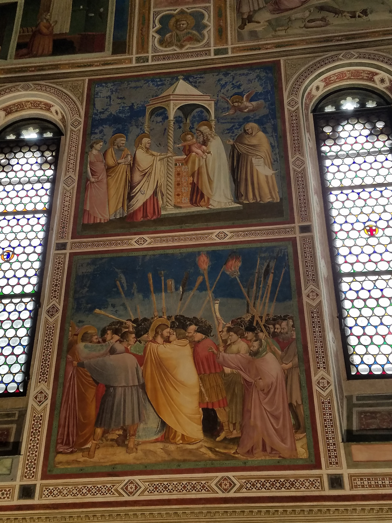 왼쪽은 '요아킴과 안나의 만남,' '유다의 배신' 오른쪽은 '나뭇가지의 전달,' '가나의 결혼식,' '애도'가 그려져 있다 장면 하나 하나를 오래 오래 보고싶었지만 제한된 시간 때문에 알고있는 이미지들을 급히 다시 한번 체크하는 정도 밖에 할 수 없었다. 원화를 보았다는 것으로 만족할 수 밖에...