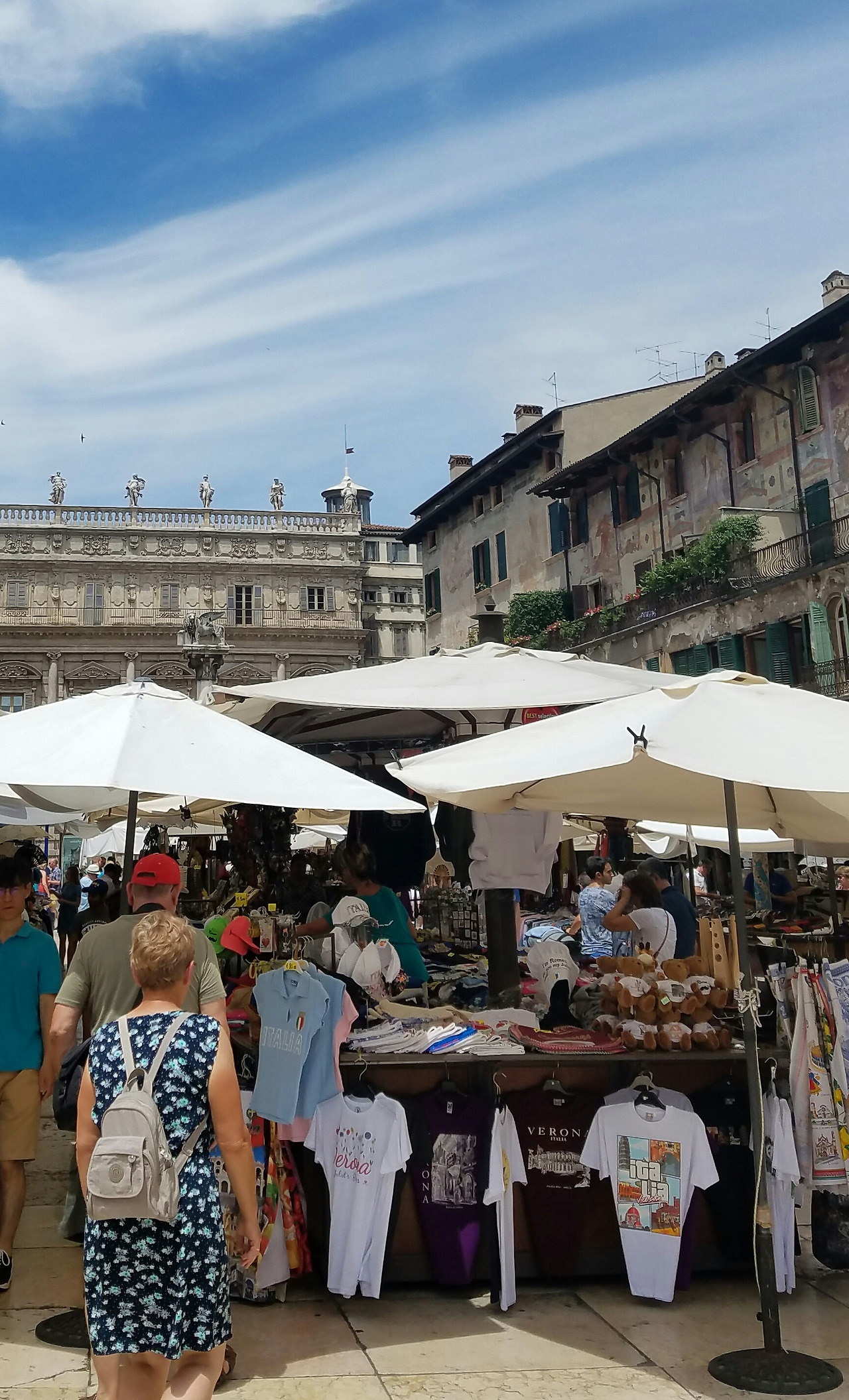 베로나의 중심에는 에르베 광장 Piazza Erbe 이 위치한다. 아름다운 건물들로 둘러싸인 광장에는 노천 시장이 있고 주변에는 많은 카페 및 식당들이 있어서 늘 사람들로 북적인다. 시 중심부가 그다지 크지 않고 관광 스팟이 주변에 모여 있다보니 하루에도 몇 번씩 이곳을 지나게 되었다.