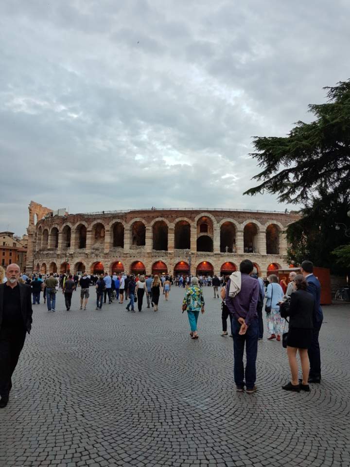 육회를 좋아하는 아들이 주문했던 Tartare di manzo베로나의 원형 극장 아레나의 야외 무대에서 오페라를 관람해보고 싶은 오랜 소망이 드디어 이루어졌다. 우리가 예매했던 아이다 Aida 는 그 옛날 올리비아 허시가 출연했던 영화 로미오와 줄리엣의 감독 프랑코 제피렐리 Franco Zeffirelli 가 연출한 오페라여서 무대에 대한 기대가 더욱 컸다. 베로나 시의 인구가 26만 명에 불과한데 페스티발이 열리는 여름 두 달 동안은 세계 각국에서 거의 100만명 이상의 사람들이 오페라 관람을 위해 베로나를 찾는단다. 문화 콘텐츠의 놀라운 힘이다. 이날 저녁도 수만 명의 사람들이 빈자리를 찾을 수 없을 만큼 빽빽하게 아레나를 채우고 있었다.