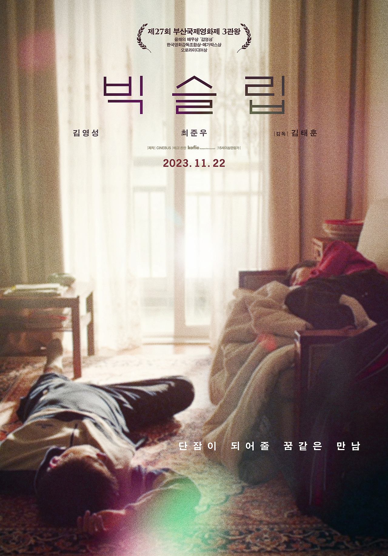 영화 <빅슬립, 2023> 은 이번 부산국제영화제에서 감독상과 배우상을 수상한 독립영화로, 우연히 마주치게 된 길호(최준우)와 기영(김영성)이 서로 부딪히며 함께 살아가 내는 과정을 그리고 있다.