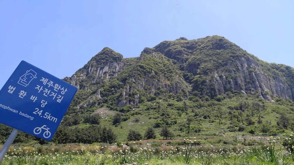 정말 90도 각도로 불쑥 솟아오른 것 같은 송악산은 멀리서 보면 멀리서 보는대로, 가까이서 보면 가까이서 보는대로 매력이 철철 넘친다. 하지만 이 곳을 둘러싼 길 역시 경사가 만만치 않다는 게 문제다. 차로 가면 모를까, 일반 자전거로는 여러번 내려서 질질 자전거를 끌고가게 될 만한 급경사가 반복된다. 바닥 표시가 애매한 구간이 있어 길치인데다 초보자인 나는 지도를 여러번 보면서 가야 했다. '이쪽으로 가는 거 맞아?'라는 생각을 두어번정도 하게 만드는 구간.