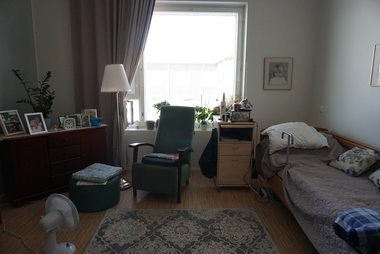 몇 가족의 허락을 받아 환자들의 방을 직접 구경할 수 있었다. 한 명당 1인실 하나가 배정된다. 환자들의 방은 각자의 집의 축소판이다. 낯선 곳처럼 느끼지 않도록, 가구부터 조명, 사진, 이불 등 모든 것을 가족들이 직접 집에서 가져와 내부를 꾸밀 수 있도록 해놓았다. 한 할머니는 남편과 함께 찍은 가족사진을 가장 많이 가져다 놓았다. 할머니는 아직 남편이 먼저 죽은 것을 기억하고 있다고 했다. 다행히도,라고 덧붙여도 될지 혼란스러웠지만, 어쨌든 할머니는 아직 남편이 이 세상에 없다는 걸 잊지 않았다.