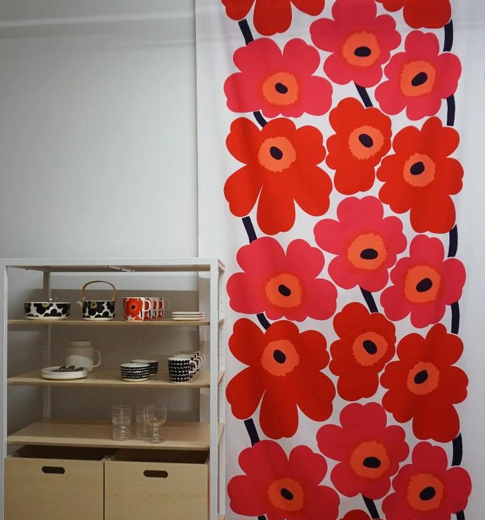 마리메꼬는 1951년 핀란드의 전설적인 여성 디자이너 마르미 라띠아(Armi Ratia)가 설립한 기업이다. 주로 원단과 패션, 인테리어 제품을 만든다. 2차 대전 이후 집단 우울감에 빠져있던 유럽인들에게 활기를 불어넣어주었던 과감한 패턴은 마리메꼬의 상징과도 같다. 특유의 다채로운 색감과 실용성은 설립 초기부터 이미 핀란드 뿐 아니라 전 세계를 타깃으로 한 것이었다.