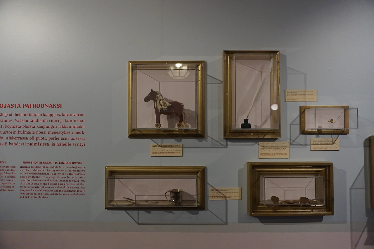 2층에 있는 꼬마들의 세계로 진입하기 직전, 박물관 건물을 세운 요한 세더홀름(Johan Sederholm 1722-1805)의 유물들을 구경할 수 있다. 가난하게 태어났지만 큰돈을 번 요한 세더홀름은 성공을 기념하며 이 멋진 건물을 지었다. 세더홀름 씨의 상점이 있던 1층은 전시관으로, 가족들이 살던 2층은 어린이 타운으로 변신했다.