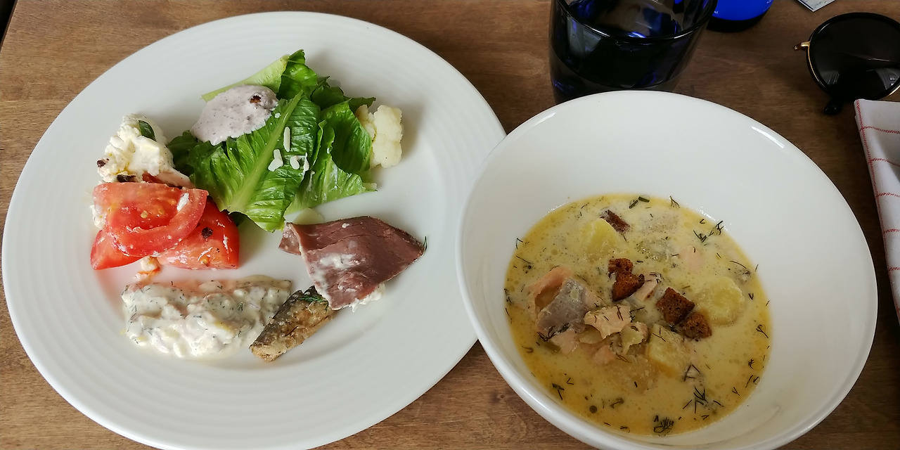 우선 연어 수프. 난 국물은 깔끔하고 담백해야 한다는 강한 신념을 갖고 있어서 기름 뜬 서더리탕도, 그 비싸다는 민어탕도 별로 좋아하지도 않는 편이다. 하지만 포르보 올드타운의 Brasserie L'amour Pizzeria에서 파는 연어 수프는 일품이었다. 뜨끈한 연어와 감자가 가득해서 '찌개'에 가까울 만큼 걸쭉하고 부드럽다. 반면 에스포의 나름 유명한 선상 레스토랑 Paven의 연어 수프는 맑은 국물에 건더기가 동동 떠있는, 일종의 생선국 같았다. 진한 연어 수프를 먹고 싶다면 포르보에 가시길!