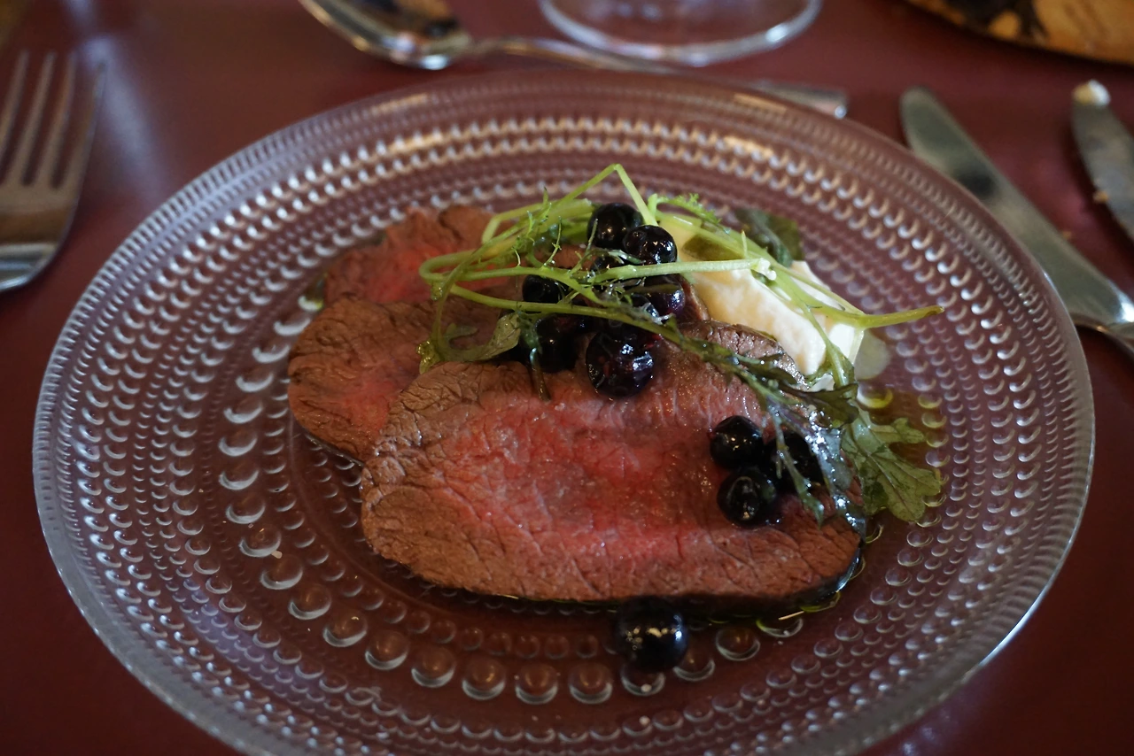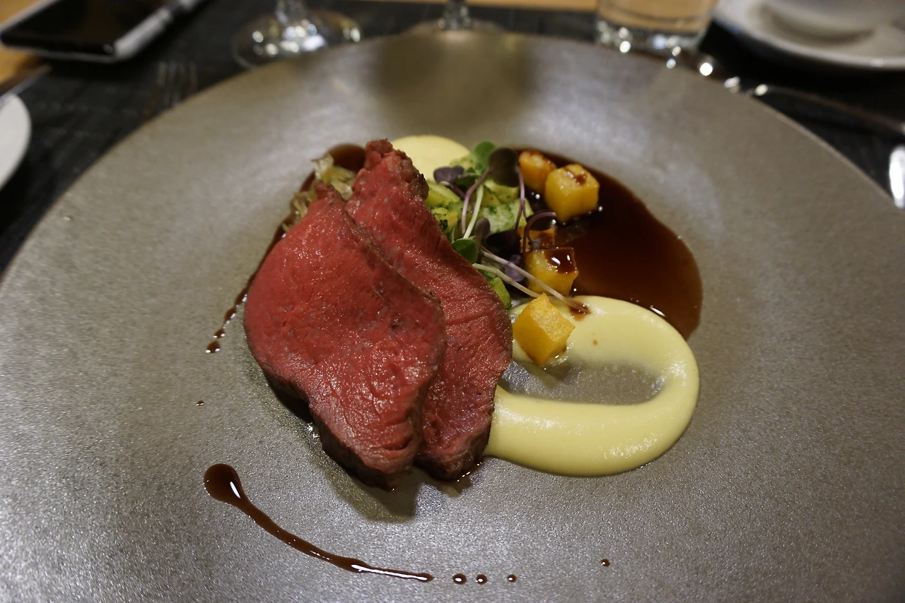사슴고기를 맛봤던 것도 독특한 경험이었다. 왼쪽은 감자 소스를 곁들인 무스Moose, 오른쪽은 블루베리를 얹은 순록Reindeer 고기였다. 엘크라고도 부르는 무스는 추운 지방에서 사는, 현존하는 가장 큰 사슴 종이라고 한다. 아주 거칠고 질기거나 지방이 잔뜩 끼어있을 거라는 생각이 들지만, 실제로는 아주 부드럽고 섬세한 살코기였다. 순록도 지방이 3% 정도로 매우 적고 단백질은 많다. 하지만 맛 자체가 부드럽고 풍부하다는 점이 무엇보다 훌륭했다. 순록과 무스 모두 와인소스가 기가 막히게 잘 어울렸다.