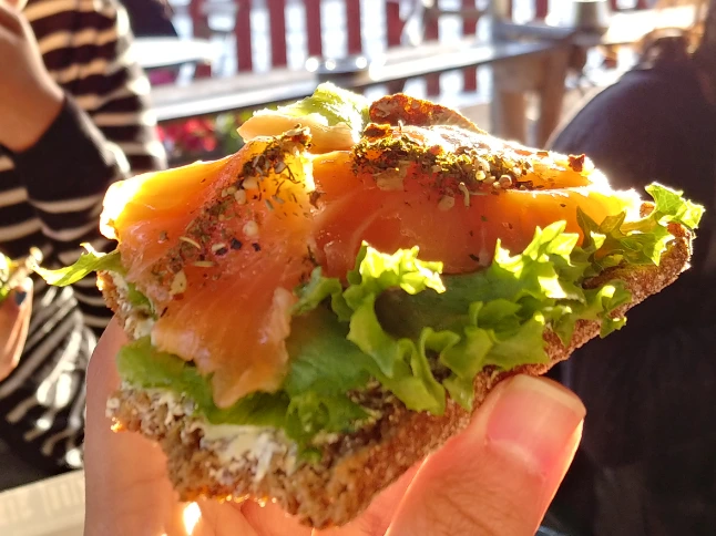 샌드위치에도 많이 먹는다. 헬싱키 최고의 핫플레이스 중 하나인 해안 카페 레가타Regatta. 여기에서 유명한 세 가지 메뉴는 시나몬롤과 불에 구워 먹는 소시지, 그리고 바로 이 연어 샌드위치다. 여기에서는 훈제 연어를 바로 샌드위치 위에 올렸지만, 이 외에도 푹 익힌 연어를 살짝 양념해서 채운 샌드위치도 많이 판다. 어쩌면 우리나라의 참치김밥 수준으로 찾기 쉬운 게 바로 그런 스타일의 연어 샌드위치인 것 같기도 하다.