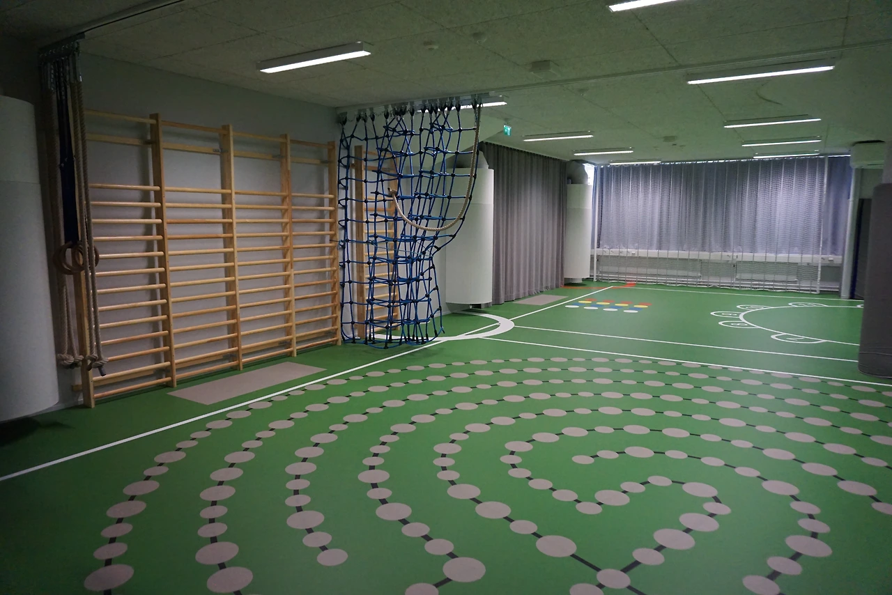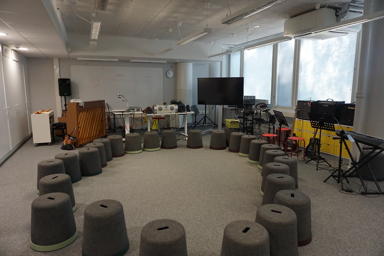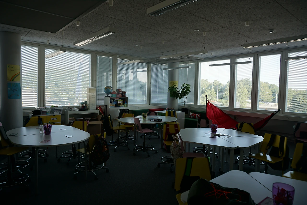 Satu Hakulinen 교장은 공간에 관련한 학교의 목표는 "아이들이 교실 하나하나가 아닌 '공간 전체'를 전부 자유롭게 사용하도록 하는 것"이라고 설명했다. 대부분의 의자와 책상은 그룹을 짓기 쉽도록 한 삼각형 모양이다.바퀴가 달려있어 옮기기도 쉽다. 벽을 따라 1인용 책상과 의자도 마련돼있다. 바닥이 둥근 스툴은 앉으면 빙글빙글 원을 그리며 몸을 움직일 수 있어서 허리도 아프지 않고 굉장히 재미있다. 일부 교실들은 교실 두 개가 한 공간에 있고 가운데에 이동식 벽이나 커튼이 설치돼있다. 교사 재량에 따라, 또는 과목에 따라 두 공간을 나눌 수도, 분리할 수도 있다.
