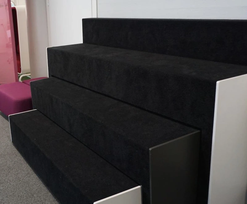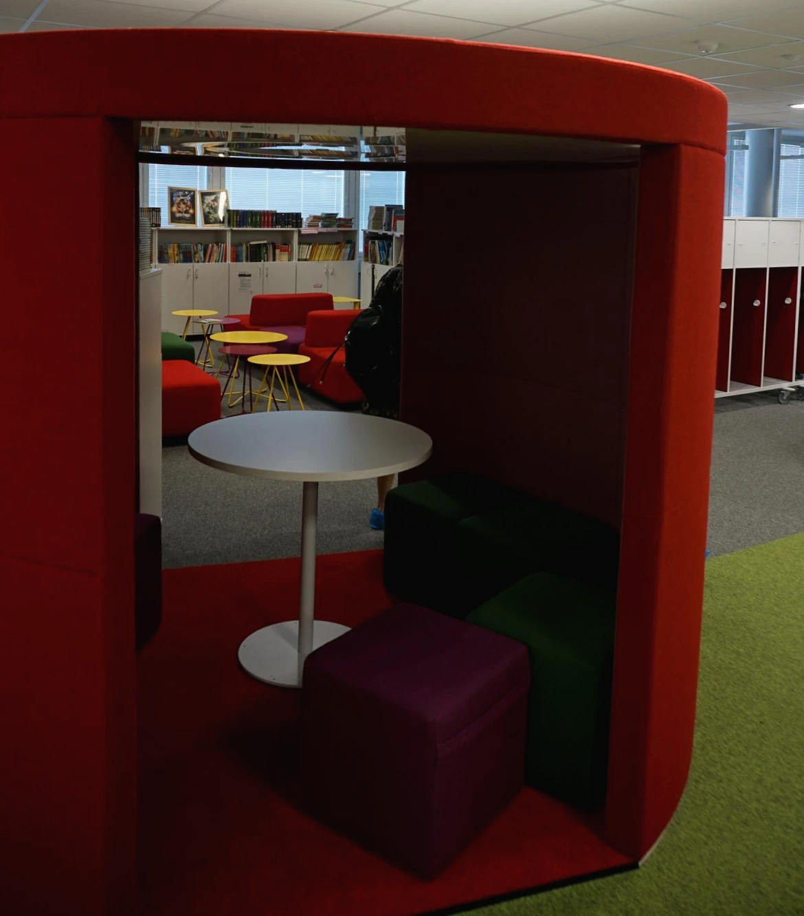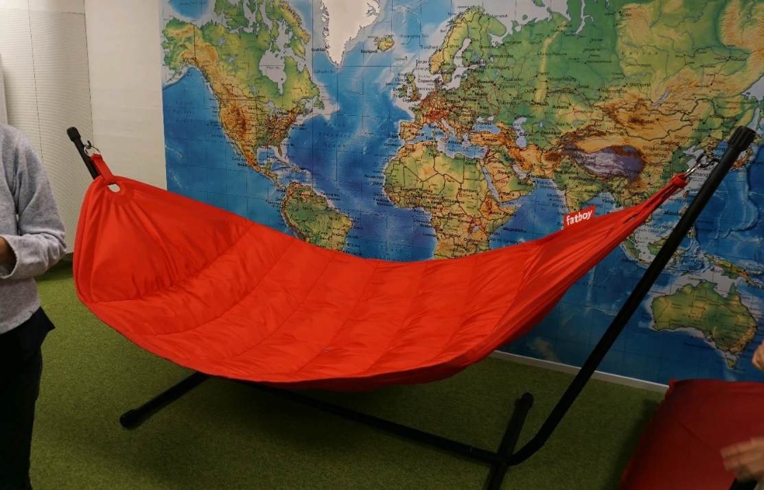 복도에는 아이들이 스스로의 힘으로 공간을 이용할 수 있게 배려한 기구들이 많았다. 미니 도서관 앞에는 명랑한 색깔의 '완전히 열려있는' 공간과 '기어들어갈 수 있는' 공간을 동시에 마련했다. 계단식, 서랍식으로 되어있어서 아래를 당기면 쭉 늘어나는 스탠드나 거대한 빨간 해먹, 아래부분에 빈 공간을 만들어놓아서 마찬가지로 아이들이 '기어들어가서' 아늑하게 놀 수 있는 디자인의 또 다른 스탠드처럼 말이다.
