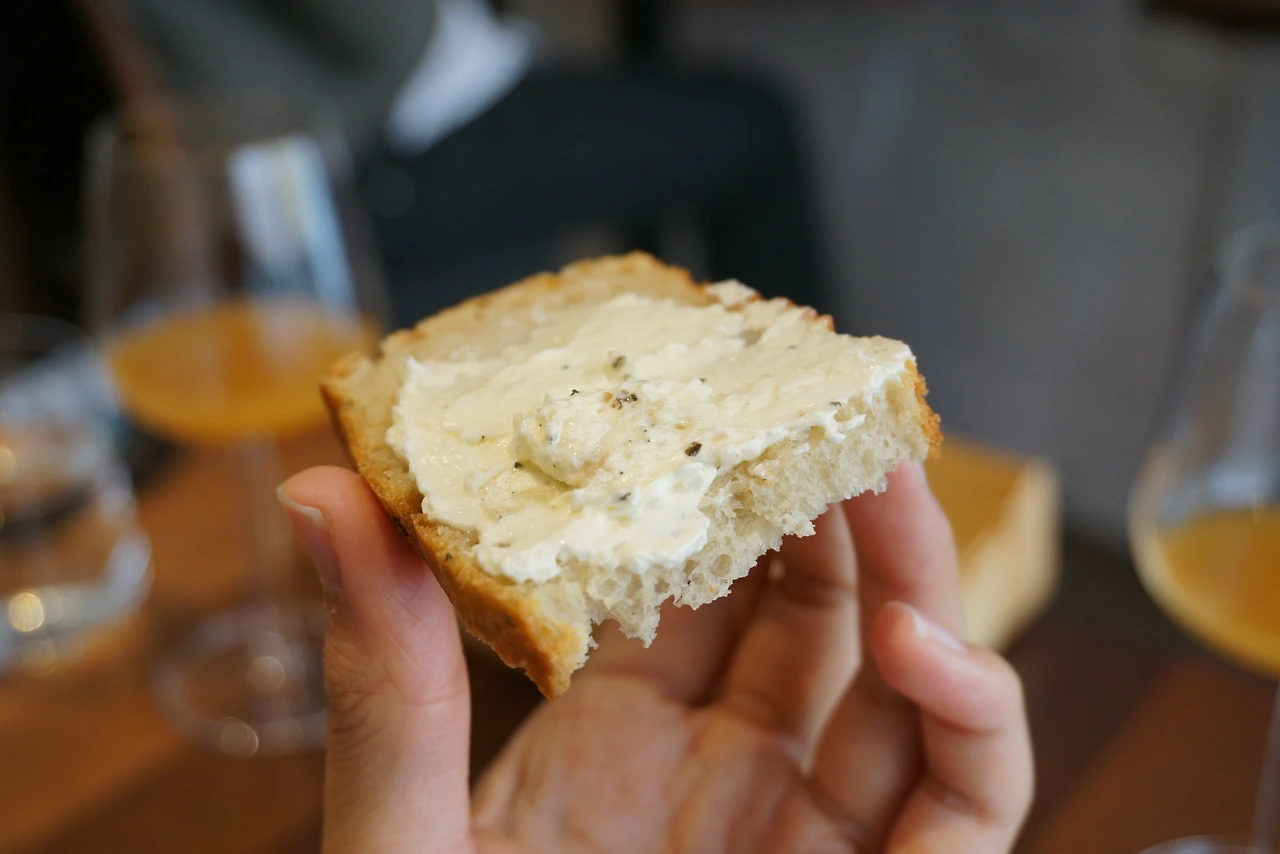 중간에는 직접 구운 포카치아와 직접 만든 버터를 곁들여 준다. 너무 두껍지도 얇지도 않은 적당한 두께의 껍질은 딱딱하지도 바스러지지도 않게 아주 완벽한 칩처럼 바삭했고, 안은 더없이 촉촉했다. 다소 기름기가 많이 느껴졌지만 조금도 느끼하진 않았다. 소금과 세이지로 간한 버터가 신의 한 수. 3주간 먹은 빵 중 가장 맛있었다.