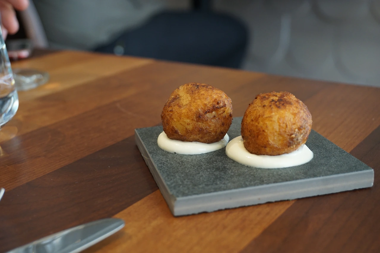 첫 번째 애피타이저는 바삭함이 살아있는 얇은 칩에 허브와 소금, 그리고 (기억나지 않는) 흰 디핑을 얹어 토마토와 함께 낸 것. 명랑한 맛이 입맛을 돋우기에 최고였다.