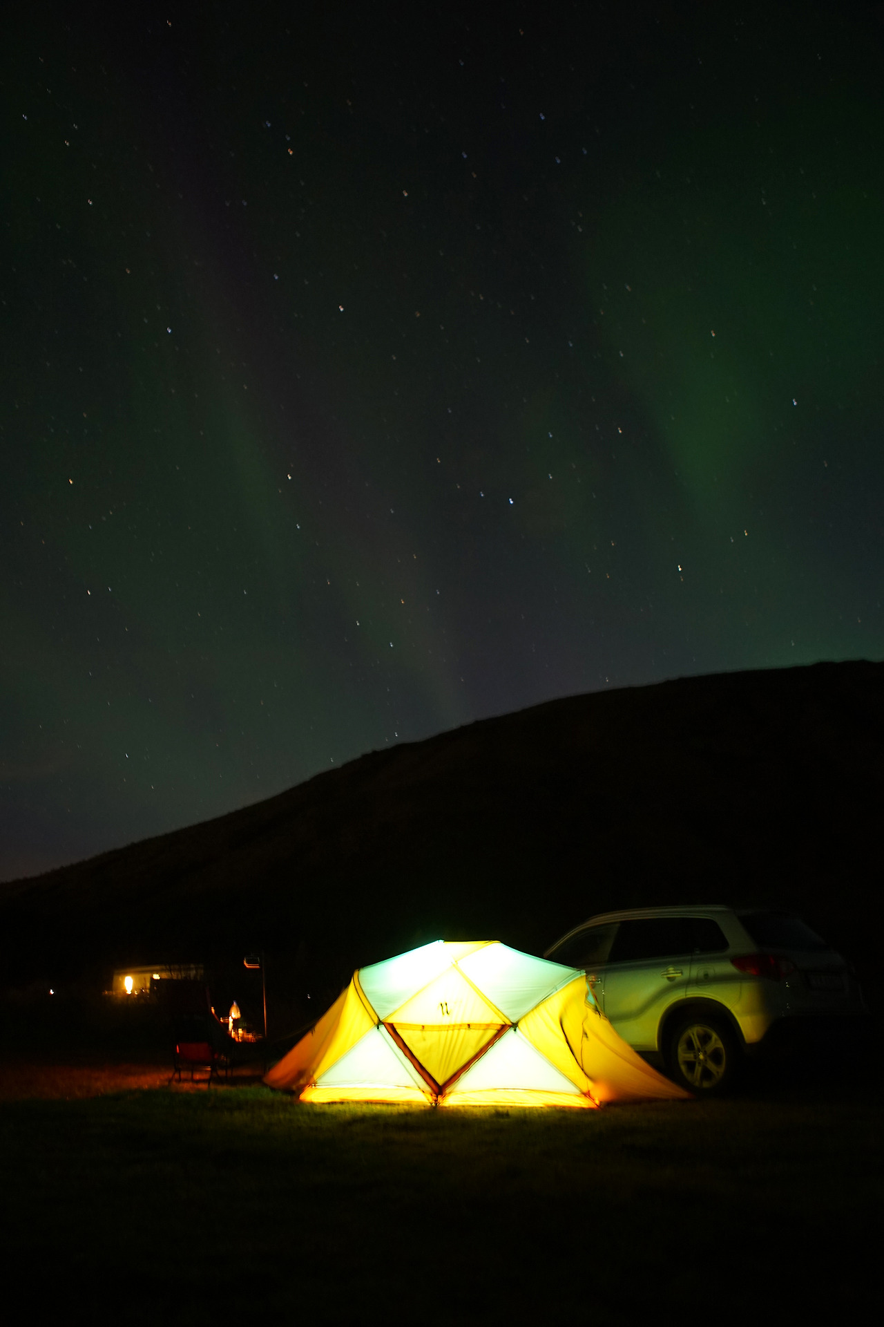 한국에서부터 이고 지고 온 텐트를 펼쳐 첫 캠핑을 하는 날 밤에도 오로라가 떴다.