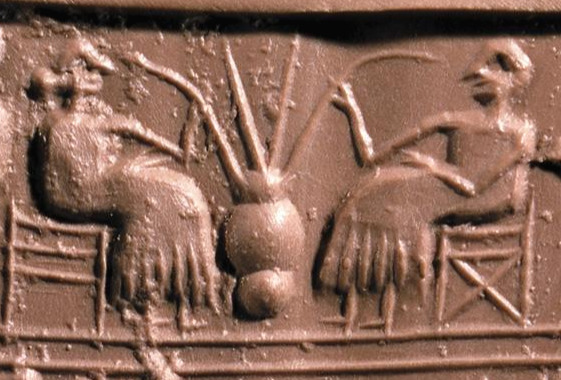 바빌로나아아의 점토판 모뉴먼트 블루에 나타난 빨대로 맥주 마시는 모습.