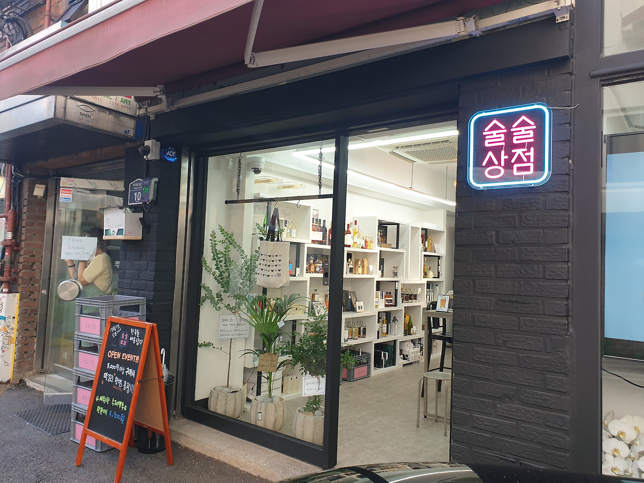 이러한 상황에서 충무로 주택가에 흥미로운 전통주 전문샵이 하나 생겼다. 명칭은 '술술 상점'. 아주 작은 공간이지만, 전국의 유명 전통주 200종류와 한국 수제 맥주까지 구비한 공간이다. 기존에 전통주를 판매하는 곳이 전통에 의거하여 다소 무거운 인테리어였다면, 이곳은 경쾌하고 밝은 이미지로 누구나 쉽게 다가갈 수 있는 톤&매너로 기획을 했다. 전통주 전문 교육기관으로 유명한 막걸리 학교가 청년 일자리 창업의 일환으로 기획했으며, 기존의 매장과 달리 전통주 전문 교육을 받은 청년들이 생활 속 거리두기를 진행하며 소비자의 취향에 맞는 인생 술을 추천해 준다.