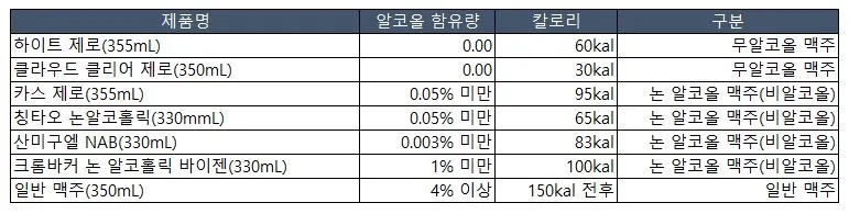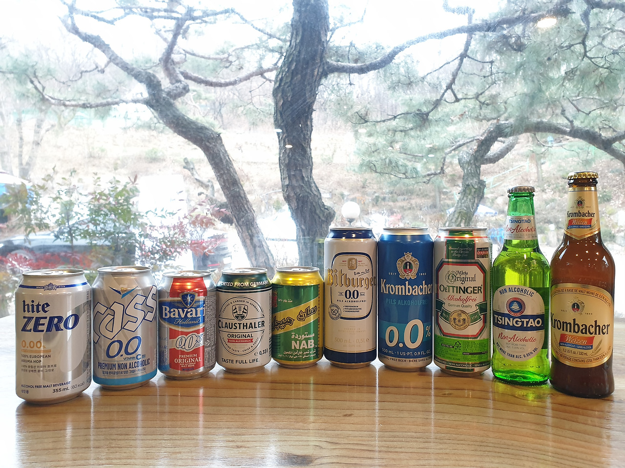 직접 구매해서 마셔본 무알코올류 맥주. 알코올이 다소 있는 논알코올(비알코올)이 더 맛이 좋은 경우가 많으며, 칼로리가 높을수록 다양한 맛이 난다.