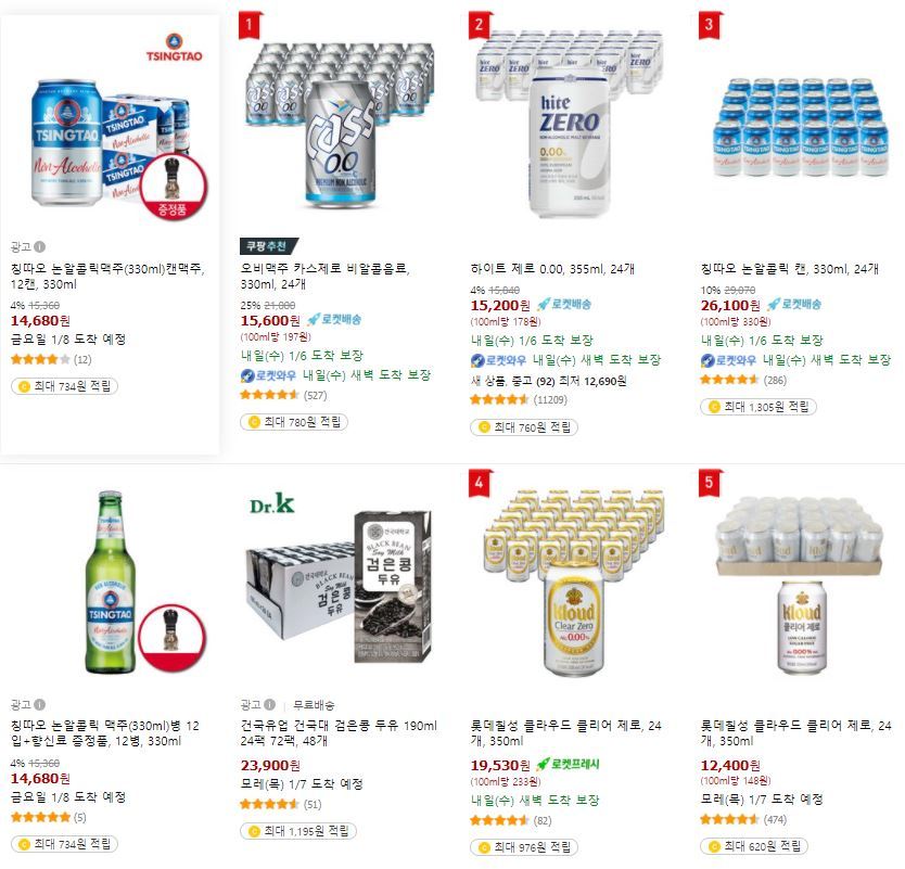 쿠팡 등에서 판매하는 무알코올류 맥주