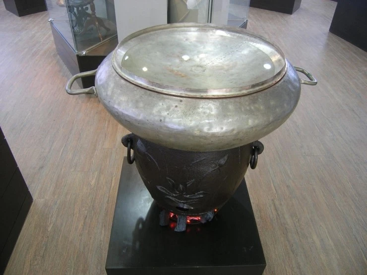 <양평의 연꽃 박물관 세미원에 있는 은솥. 내국 감홍로를 증류하는 모습을 시연하고 있다. 출처 세미원>