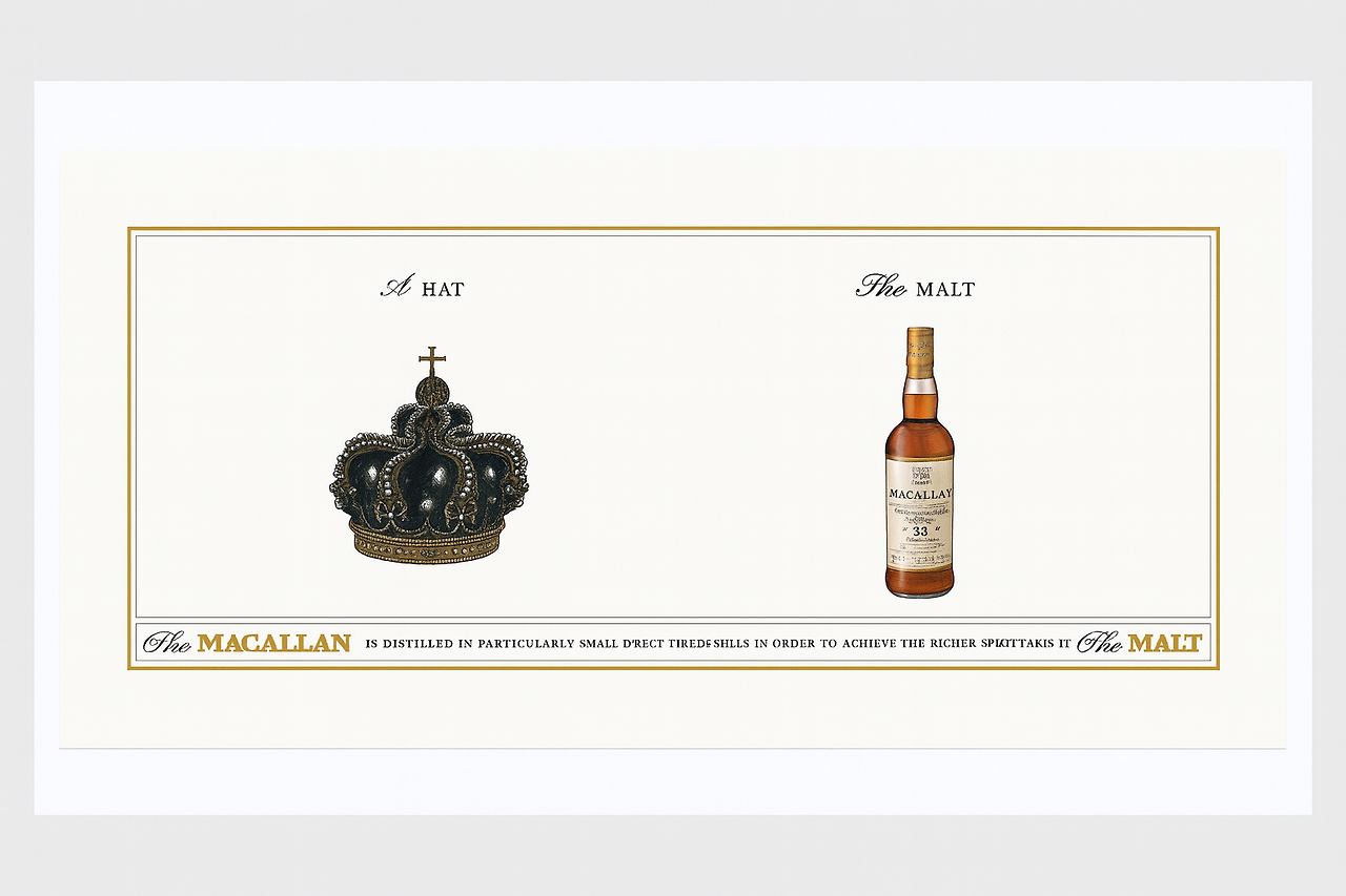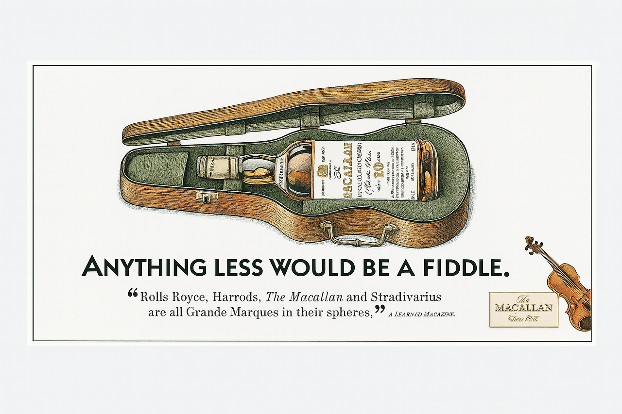 나아가, 맥캘란을 최고급 명품의 반열에 올려놓았다. 한 광고에서는 스트라디바리우스 바이올린 케이스에 맥캘란 병을 넣고 "Anything less would be a fiddle (이보다 못하다면 제대로 된 것(위스키)이 아니다/그저 그런 바이올린일 뿐이다)"이라는 중의적 카피를 사용했다.