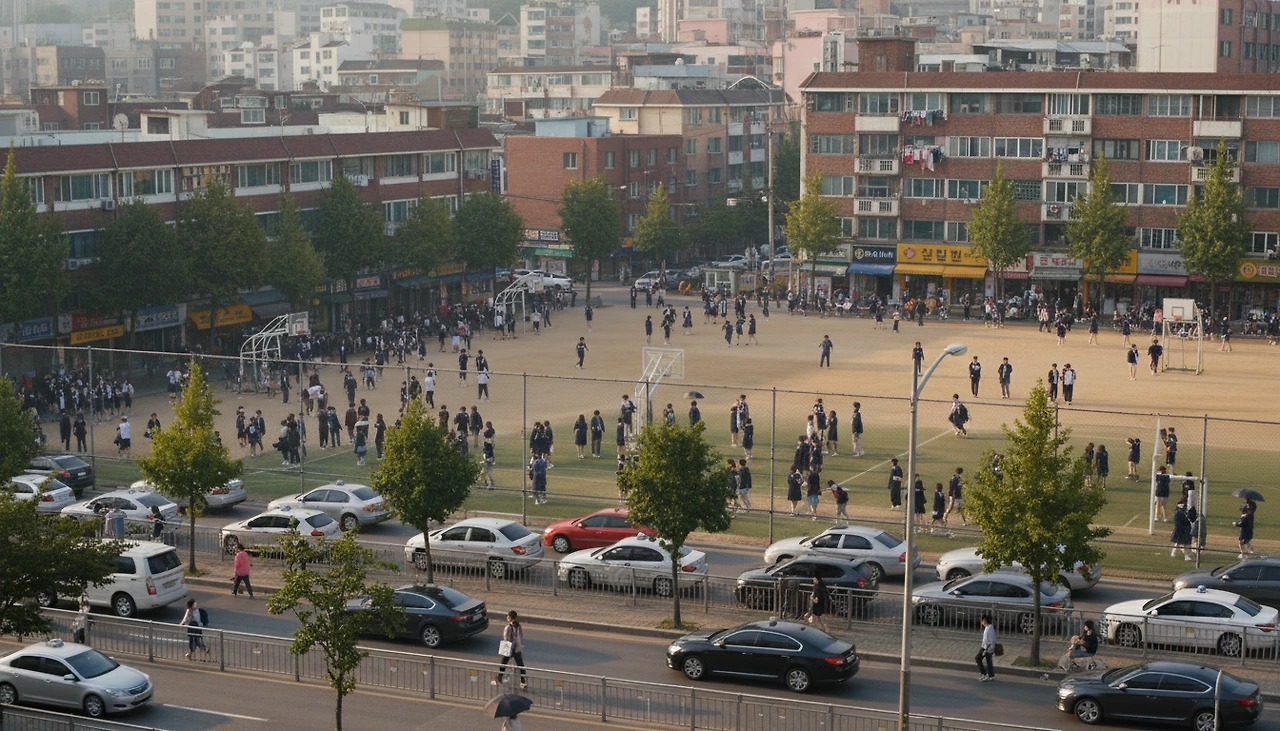 영화는 전문 배우나 인위적인 세트장이 아닌 학생과 교무실, 교실 등으로 꾸밈없이 생활의 디테일을 살린다. 학생들이 운동장을 달리고 교실에서 시험을 보고 불량 학생들이 아지트에서 담배를 피운다. 교무실의 선생님들도 회의를 하고 식당에서 회식을 한다. 이런 장면들은 서사의 중심 사건과 직접 관련은 없지만 현실적인 환경을 만드는 역할을 한다. 이러한 비서사적 컷(non-narrative shots)은 스토리 때문이 아니라 시간의 흐름과 공간의 분위기를 보여주기 위해 넣는다. 특히 이 영화에서는 카메라가 몰래 관찰하는 다큐멘터리 같은 연출로 찍혀있는데, 그래서 등장인물의 연애가 더 불편하고, 현실적으로 느껴진다. 그것은 이 영화의 주제와도 연결되어 있다. 유림과 홍의 관계가 특별한 사건이 아니라 일상 속의 한 장면이라는 점 말이다.
