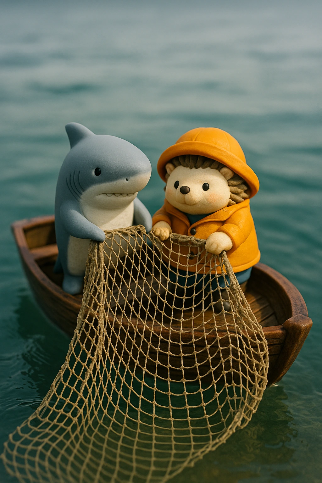남자는 매일 동이 트기 전에 물에 나갔다. 파도도 없이 호수처럼 잔잔한 바다였다. 닻을 올리자, 배는 알아서 나아갔다. 항구에서 떨어진 얕은 만灣에서 남자는 어김없이 그물을 던졌다. 하지만 새까만 어둠뿐이라, 바닷물에 던지는지 밤하늘에 던지는지 남자는 매번 헷갈렸다.