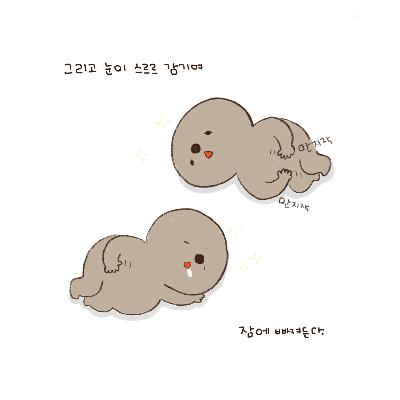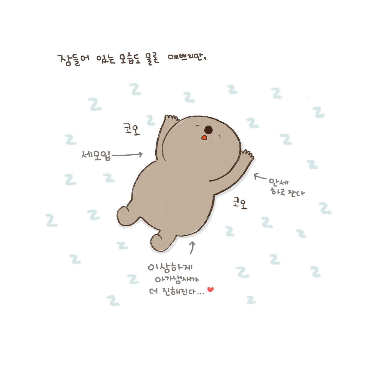 땅콩이는 하루에 열두시간정도 잡니다. 하루의 반을 잠으로 보내는 셈이지요. 사실 이 글을 쓰는 지금도 잠들어 있습니다. 아마 곧 깨어나 맘마를 찾을 거예요.