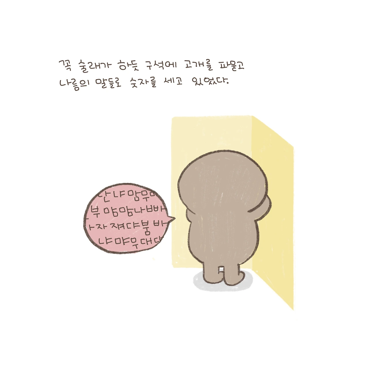 저러고 5분동안이나 있었답니다. 요즘 땅콩이는 스펀지 같아요. 주변에서 일어나는 모든 일을 빨아들이고 또 뒤돌아서면 열심히 연습하거든요! 빨리 땅콩이가 말을 하는 날이 왔으면 좋겠어요.