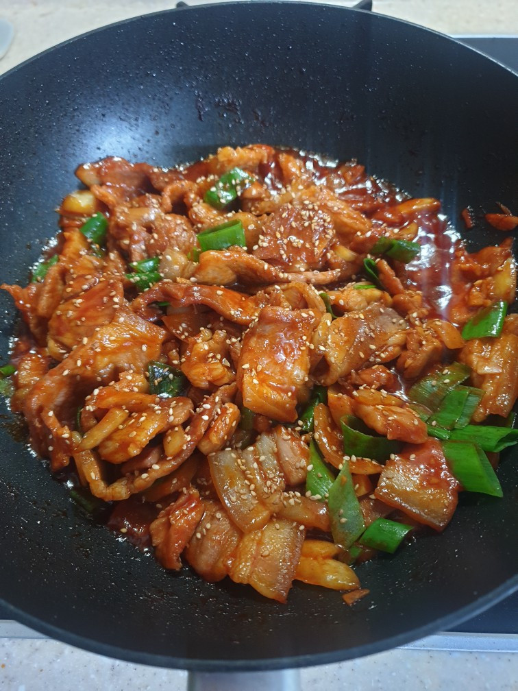 딸래미가 독서캠프 간 틈을 타 아들이 좋아하는 제육볶음을 했더니 냄새 맡자마자 춤을 추며 나오더라.