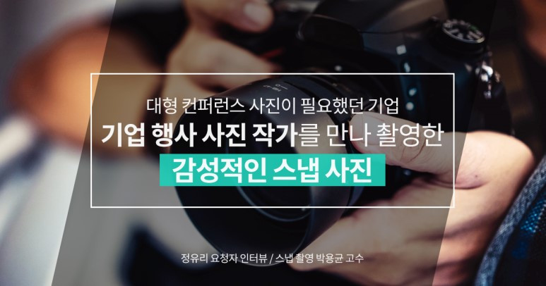 숨고에서 스냅 촬영을 요청하여 대형 컨퍼런스 스냅 촬영을 마친 '정유리' 요청자님과 인터뷰를 진행했습니다. 정유리님의 회사는 '2019 부동산 임대 관리 트렌드'라는 대형 컨퍼런스를 개최하게 되었고 홍보를 위해 사진을 남겨야 했습니다. 하지만 딱딱한 사진보다는 자연스럽고 감성적인 사진을 원했고 박용균 고수님을 만나게 되었죠.