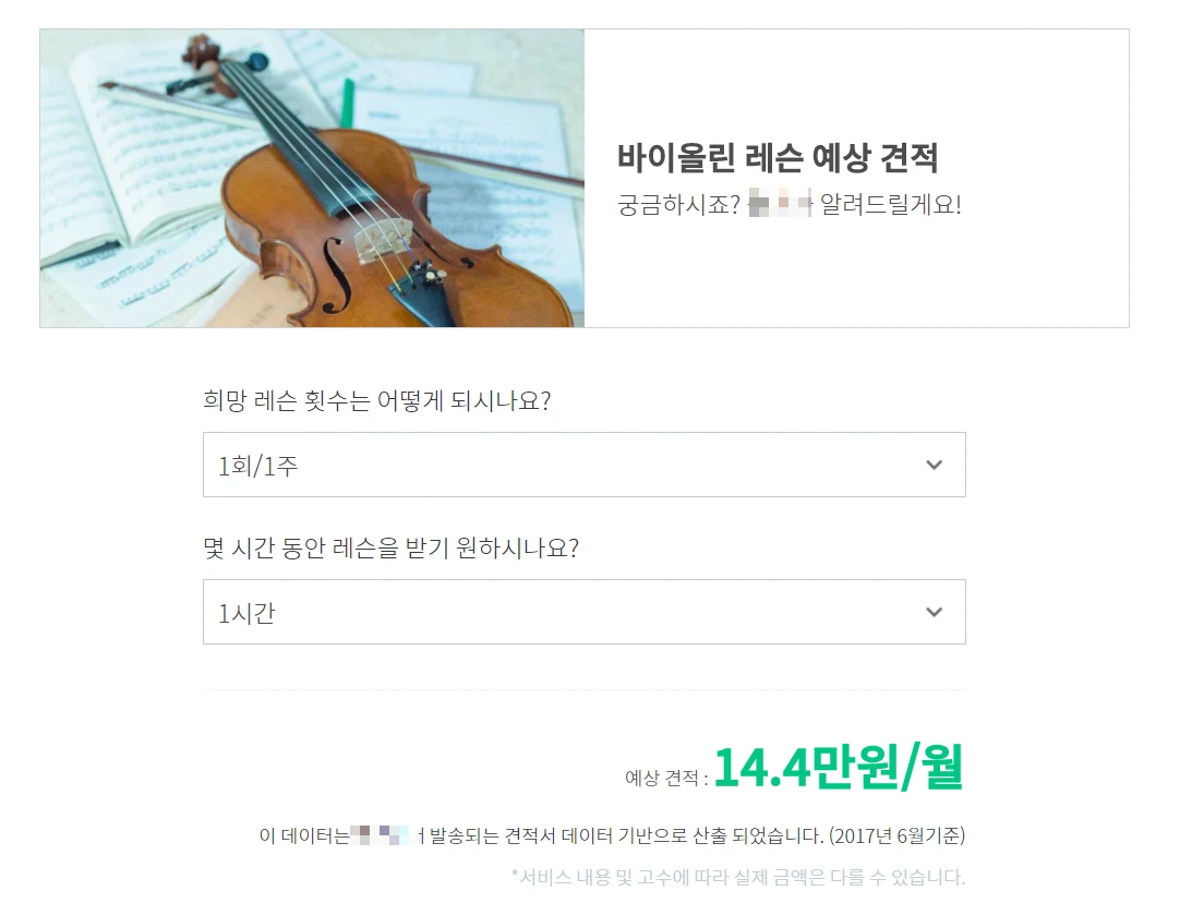 2017년 한달치 바이올린 레슨비는 14만 4천원 예상