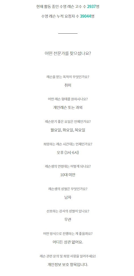 Q. 어떤 이유로 수영 레슨을 요청하게 되셨나요?