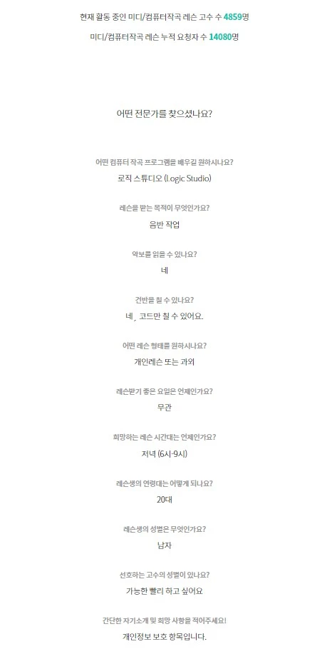 숨고에서 미디/컴퓨터 작곡 레슨을 요청한 송민근 요청자님과 인터뷰를 진행했습니다. 송민근님은 보컬을 전공으로 하는 예술대학교의 학생입니다. 군대를 다녀온 뒤 보컬리스트를 넘어서 아티스트적인 면모를 갖춰 차별성을 가져야 된다고 생각을 했고 여러 선생님을 찾다가 숨고에서 김은우 고수님을 만나게 되었습니다.